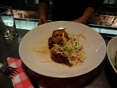 Suivrons les boulettes de veau fenouil huile de truffe citron : j’ai adoré ce plat, plein de goût, bien juteux très parfumé, c’est succulent.