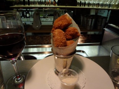 Une place au bar, un verre de vin rouge à la main, nous sommes prêts à goûter à la cuisine, des tapas, bien préparés, judicieusement assaisonnées, délicieux et délicats.