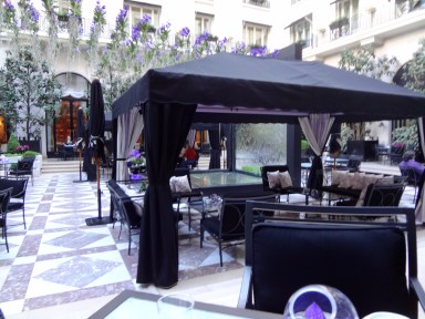 Lorsque nous avions parlé de ce thé de filles, c’était fin mars. Les vacances, les escapades du week-end, le travail sont autant de raisons qui ont repoussées ce moment. En avril, on se réserve un dimanche de mai et à cette époque, nous étions plutôt confiantes sur la clémence du temps pour cette période et prévoyons de nous faire une terrasse. Par chance, lorsque je retrouve Déborah et Sophie pour notre tea-time au Georges V, il fait beau, frais, mais beau. On ne se démonte pas, terrasse on avait prévu, terrasse nous allons faire.