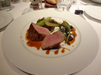 … arrive mon quasi de veau du Limousin asperges et morilles: c’est un régal ! C’est simple, bien assaisonné, la viande est tendre et rosée, les morilles en nombre, les asperges sont encore croquantes !