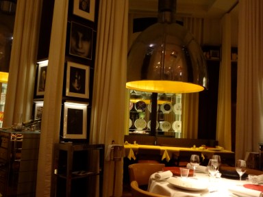 Situé en plein cœur de l’hôtel, ce restaurant vous subjuguera par sa décoration : que ce soit la fresque de Stéphane Calais au plafond, les lampes monumentales dorées à l’intérieur, les lustres imposants tout en cristal, les photos, le mur de bouteilles associées selon les couleurs des vins. Pas étonnant que la décoration soit époustouflante, elle est signée Starck et définitivement il a fait du bon travail en décorant ce lieu.