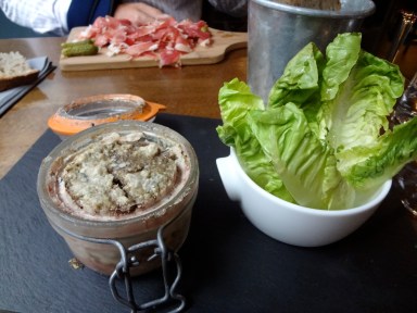 Autant j’ai apprécié la terrine bien assaisonnée et pas grasse, ainsi que le jambon bien parfumé mais l’assiette de légumes et d’houmous est assez quelconque.