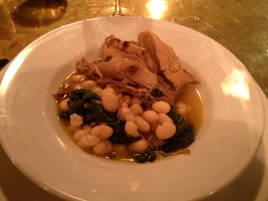 L’échine de porc cuite au vin blanc, herbes et tomates, accompagnée d’haricots blancs et de cima di rapa (légume ressemblant à des pousses de navets ou de brocolis) est également un excellent plat, bien préparé et toujours très parfumé.