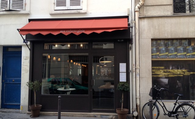 La dernière fois, nous étions allés Aux petits plats, un bistrot très sympa, proposant des plats bien réalisés avec une pointe d’originalité. Cette fois-ci, j’ai porté mon choix, sur aux enfants gâtés, il faut dire que le laïus de Gilles Pudlowski sur la cuisine du chef Frédéric Bidault, ex – Grande Cascade et ex Lasserre, ne m’a pas laissé indifférente bien au contraire.
